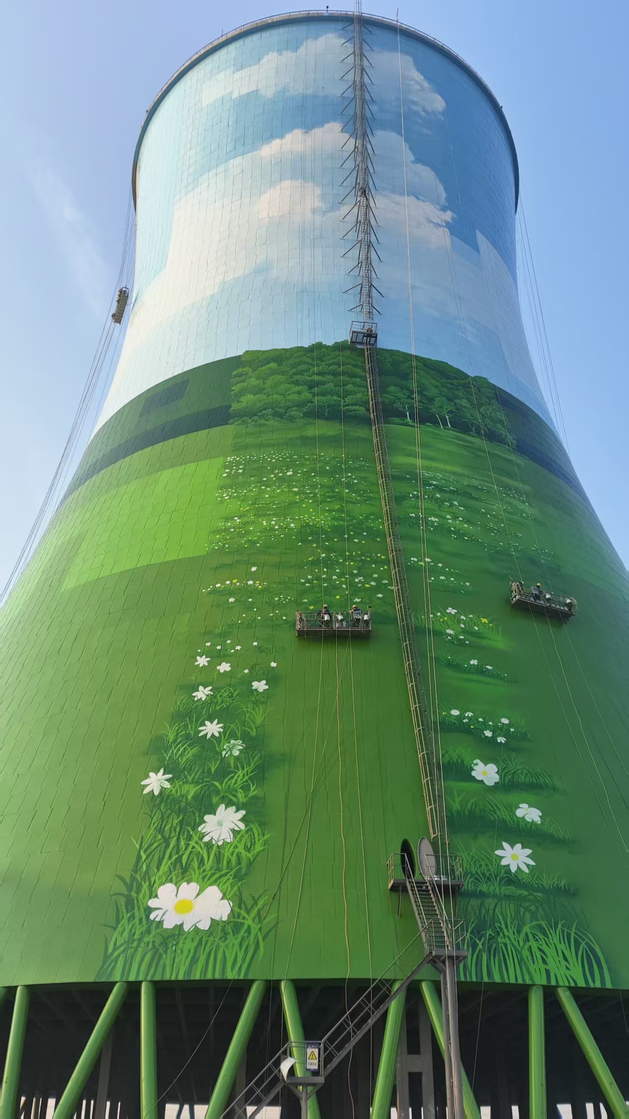 冷卻塔彩繪專家宏順建設完成高80米的巨型雙曲線塔身化作立體畫布